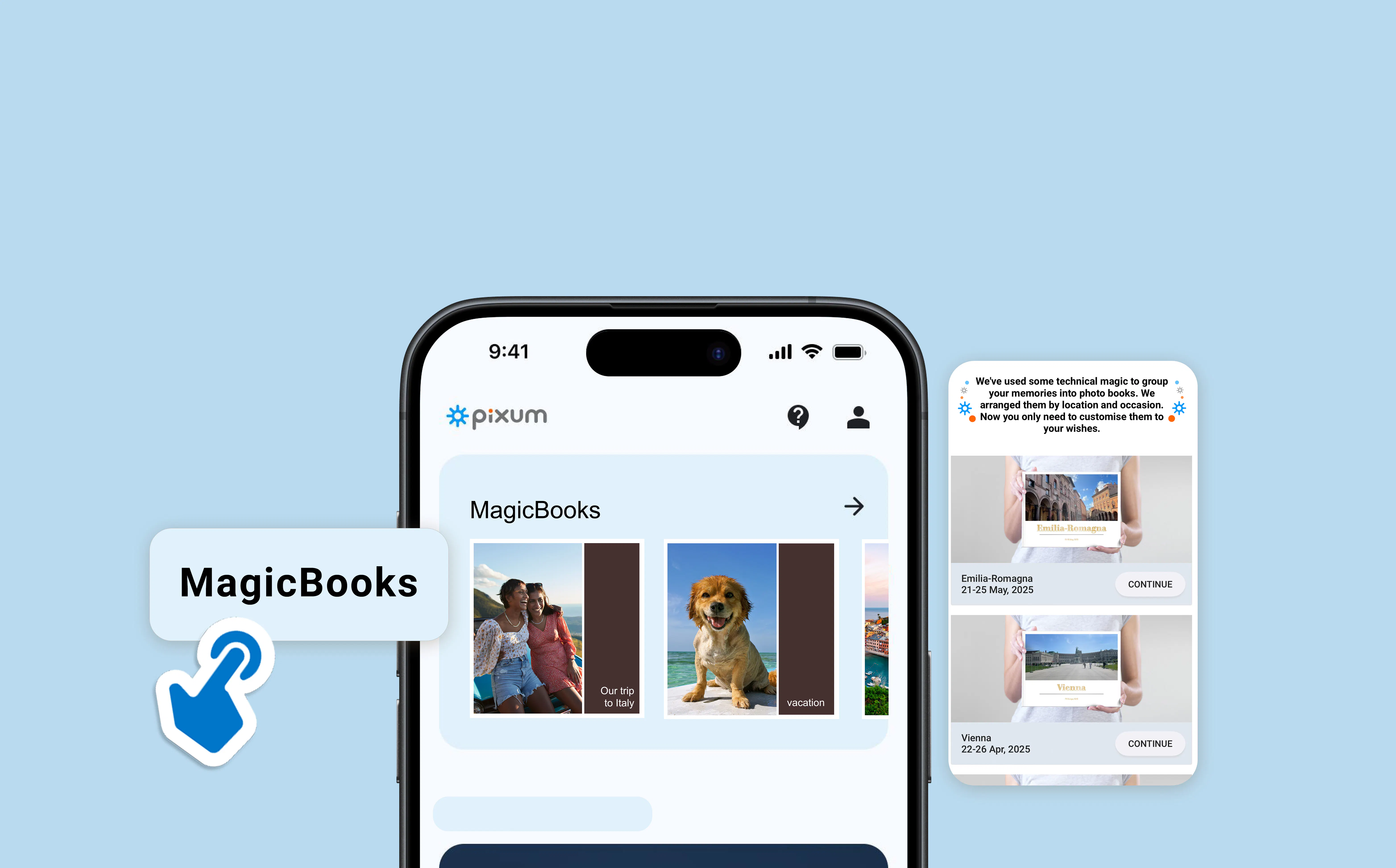 С функцията MagicBook всичките ви снимки се събират автоматично според избраната от вас тема – независимо дали става дума за сватба или пътуване до някой град. За нула време ще получите предложение за фотоалбум, което можете напълно да персонализирате и оформите точно така, както ви харесва.😍